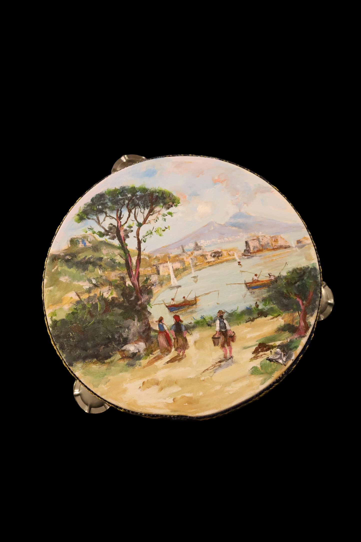 Il tamburello è uno strumento tipico della cultura musicale napoletana. Il prodotto è interamente dipinto a mano e ognuno di essi ritrae le bellezze del paesaggio partenopeo.